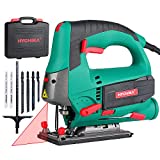 HYCHIKA Sierra de Calar 800W, Corte en Madera: 110mm, 800W 800-3000SPM, Velocidad Ajustable (1-6), 4 Modos de Corte, Corte -45º a 45º, Caja Magnética de Hoja, Cortar Madera Metal Plástico